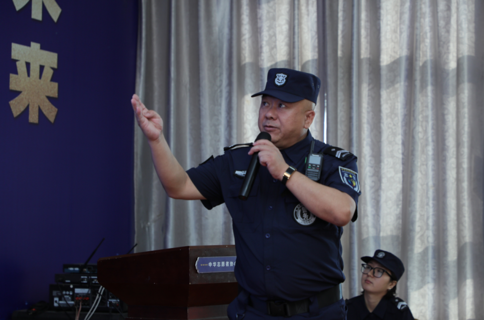 中华志愿者协会警务志愿服务总队副队长,熊海波为大家做了警务志愿服务总队的经历与成长过程的讲解,使各界人士和学员对警务志愿服务总队有了更加深刻的认识,并为自己能够成为一名光荣的警务志愿者感到无比的自豪,